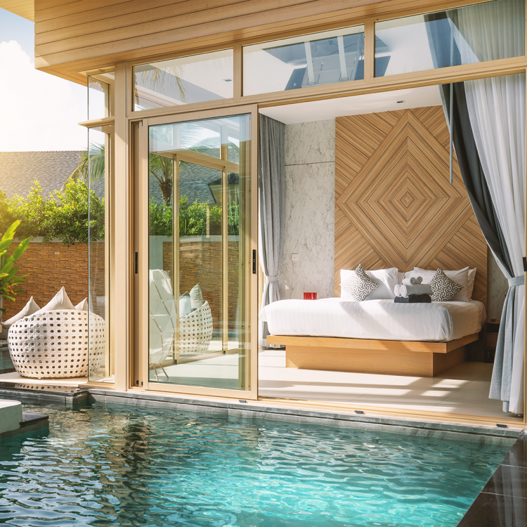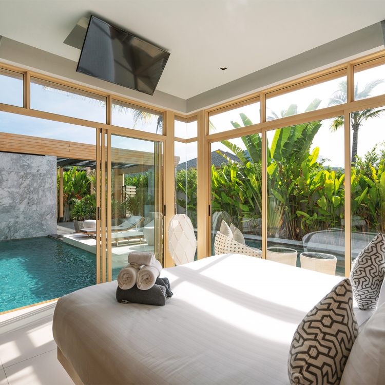 พักผ่อนท่ามกลางแมกไม้ในห้องพักซูพีเรียร์ (ขนาด 30 ตร.ม.) สไตล์รีสอร์ทที่มองเห็นวิวสระและวิวสวน พร้อมเพิ่มความสุขในการอาบน้ำด้วยห้องน้ำแบบแยกส่วน เลือกได้ทั้งการแช่น้ำอุ่นสบายๆ ในอ่างอาบน้ำ หรืออาบด้วยฝักบัวนอกห้องเพื่อสัมผัสสายลมเย็นตามธรรมชาติ แต่ยังคงมีความเป็นส่วนตัว